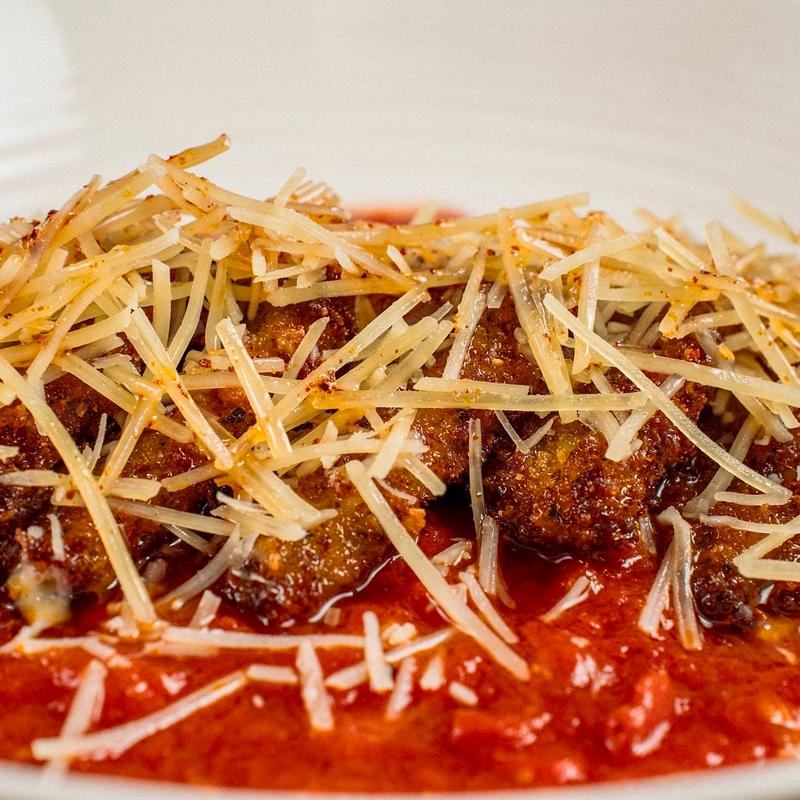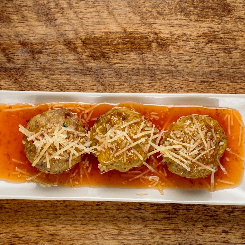 Panko-crusted fresh mozzarella, peperonata sauce, parmigiano-reggiano, basil-infused hot honey | Vegetarian upon request