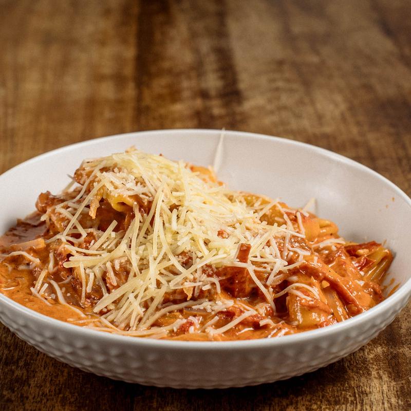 Pepperoni ribbons, braised shallots, calabrian chili flakes, vodka blush sauce, freshly grated parmigiano-reggiano